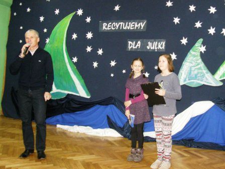 5 grudnia odbył się Gwiazdkowy Konkurs Recytatorski, który otworzył dyrektor szkoły Waldemar Minta. Przybyłym na wieczór poetycki rodzicom Anna Słomianna przewodnicząca Samorządu Uczniowskiego przekazała informacje na temat Julii i akcji charytatywnej. Uczestnicy konkursu rozdawali słuchaczom ulotki i kolorowanki z informacją, jak można finansowo wspomóc zakup specjalistycznego urządzenia, pozwalającego dziewczynce na kontaktowanie się ze światem.