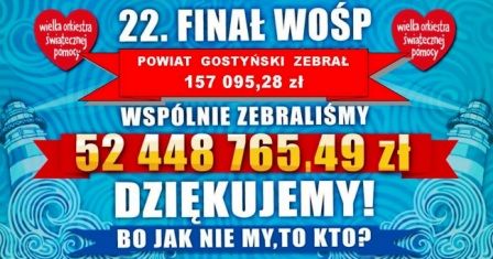 Mamy swój udział w tym ważnym wydarzeniu. I choć nie chodzi o bicie rekordów, bo najważniejsze jest bycie razem, to łącznie w powiecie gostyńskim ofiarowaliśmy w czasie tegorocznego grania 157 095,28 zł na zakup najnowocześniejszych urządzeń dla ratowania życia dzieci oraz ułatwiających godną opiekę medyczną seniorów!