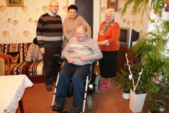 Pan Józef ze Stowarzyszenia Chorych na Stwardnienie Rozsiane w Gostyniu otrzymał wózek o napędzie elektrycznym dla osoby niemogącej się samodzielnie poruszać. Pan Józef porusza się tylko przy pomocy kul i to tylko na kilkunastometrowych metrowych dystansach. A pojazd pozwoli mu na dojeżdżanie i uczestnictwo w zajęciach rehabilitacyjnych, które odbywają się w centrum rehabilitacyjnym odległym o kilka kilometrów od jego domu.