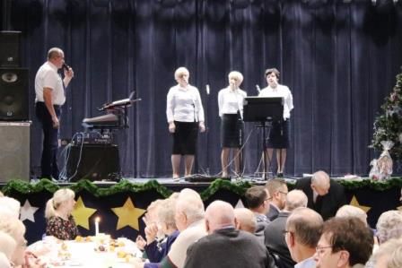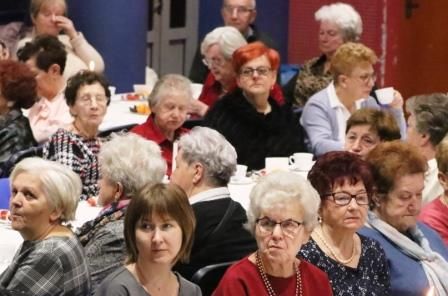 Seniorzy podzielili się opłatkiem i składali sobie życzenia, a potem zasiedli do poczęstunku, oglądając przygotowane występy artystyczne.