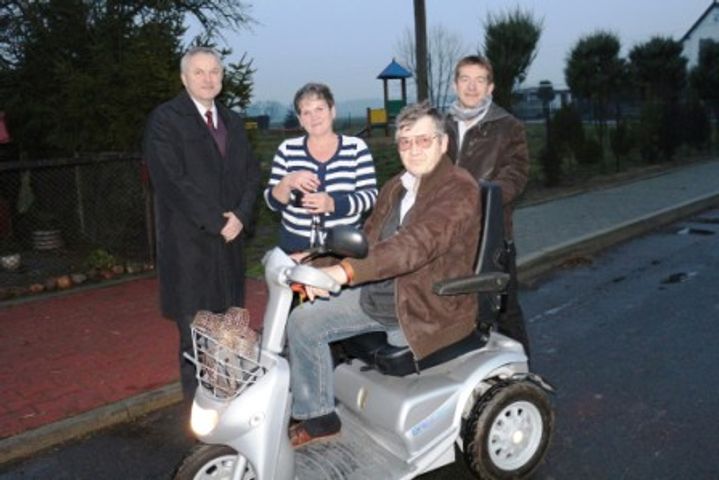 Skuter do Pana Henryka trafił za pośrednictwem PCPR w Gostyniu. Pojazd jest w pełni przystosowany do poruszania się po drogach publicznych. Dla P. Henryka – to nie do uwierzenia, że taki pojazd trafia do mnie. Brakuje słów, żeby podziękować. A żona Pana Henryka, nie kryjąc wzruszenia, stwierdziła zwracając się do męża: - Będziesz się teraz musiał nauczyć jeździć na tym pojeździe. Okazało się jednak, że Pan Henryk odłożył kule, usiadł na skuterze i … pojechał. Pojazd jest prosty w obsłudze, a Pan Henryk od razu go wyczuł i opanował.