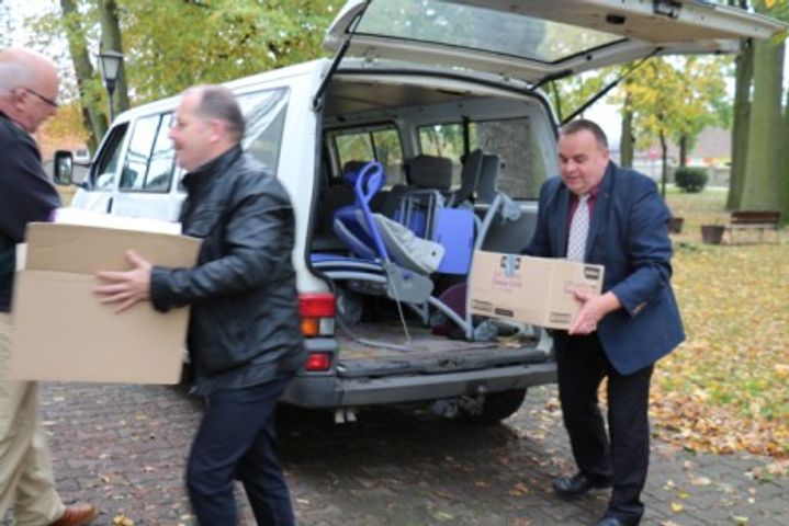 Holendrzy przywieźli też kolejne dary: sprzęt rehabilitacyjny i pomocniczy oraz inne przydatne w pracy z osobami niepełnosprawnymi rzeczy.
