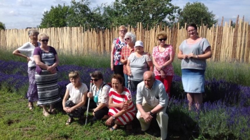 Członkowie gostyńskiego koła Polskiego Związku Niewidomych spotkali się w Starym Bęlęcinie u państwa Lenarczyków na plantacji lawendy. Zwiedzili posiadłość i pole lawendowe, zachwycając się zapachem lawendy. Kolejne godziny po spacerze spędzili na warsztatach, ucząc się wyrabiania różnych ozdób z lawendy. – „Było wspaniale, wszyscy bawili się doskonale wspominając lata młodzieńcze i to, jak to robili wianki i nie tylko…” – podsumowuje Janina Karpińska Przewodnicząca Koła PZN w Gostyniu.