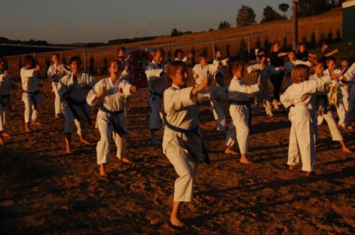 Zgrupowanie sportowe karate odbyło się w ośrodku „Kraina Orła Białego” w Starym Gostyniu. Ostatni trening odbywał się w promieniach zachodzącego słońca. A na koniec zgrupowania Zarząd klubu karate „TĘCZA” przygotował dla karateków kilka niespodzianek. Najpierw prezes TKKF „TĘCZA” Waldemar Szwedek wyróżnił pucharami najaktywniejszych i najszybciej rozwijających się młodych karateków: Amelię Ziółek i Dawida Wiecznego. Później młodych karateków czekał nocny marsz przez labirynt, w którym czaiły się dziwne postacie. Dla najmłodszych przygotowano też ruchowe zabawy i ciekawą lekcję historii. A całość zgrupowania zakończyła wspólna biesiada karateków, trenerów i rodziców.