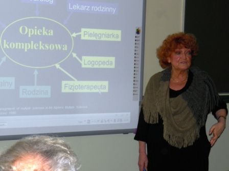 Jest to choroba wymagająca stałego leczenia, ale w Polsce procedury NFZ pozwalają na leczenie tylko ok. 5 procent chorych. Jest ona trudna do rozpoznania, gdyż pierwsze objawy są typowe dla innych chorób. Na pojawienie się tej choroby mogą wskazywać zaburzenia słuchu, wzroku lub czucia, którym towarzyszą częste bóle głowy, zwiększona męczliwość, zaburzenia w oddawaniu moczu, drętwienie, zawroty. Ważne jest, by trafić szybko do neurologa, który skieruje na oddział neurologiczny, gdyż tylko tam można przeprowadzić kompleksowe badania pod kątem SM. Dr Hertmanowska dokładnie omówiła przebieg choroby i jej dziesięć stadiów. Zwróciła szczególną uwagę słuchaczy na okresy zaostrzeń i towarzyszące im postępowanie niepełnosprawnmości, wymagające każdorazowo interwencji specjalistów. Niezależnie od tego chorzy na SM wymagają stałej kontroli i kompleksowej opieki lekarzy specjalistów, pielęgniarki, logopedy, fizjoterapeuty, pracownika socjalnego i rodziny.