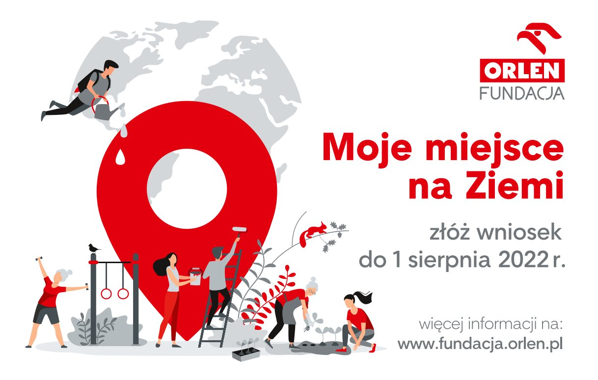 Nabór wniosków do piątej edycji programu „Moje miejsce na Ziemi” zakończy się 1 sierpnia. Fundacja ORLEN wspiera w nim projekty związane z ekologią, sportem, bezpieczeństwem, kulturą, ochroną zwierząt czy zrównoważonym rozwojem. O grant mogą ubiegać się m.in.: organizacje pozarządowe, jednostki samorządu terytorialnego, instytucje kultury, szkoły, przedszkola, koła gospodyń wiejskich, jednostki ochotniczych straży pożarnych czy parafie. Wniosek on-line można znaleźć na stronie internetowej www.fundacja.orlen.pl.