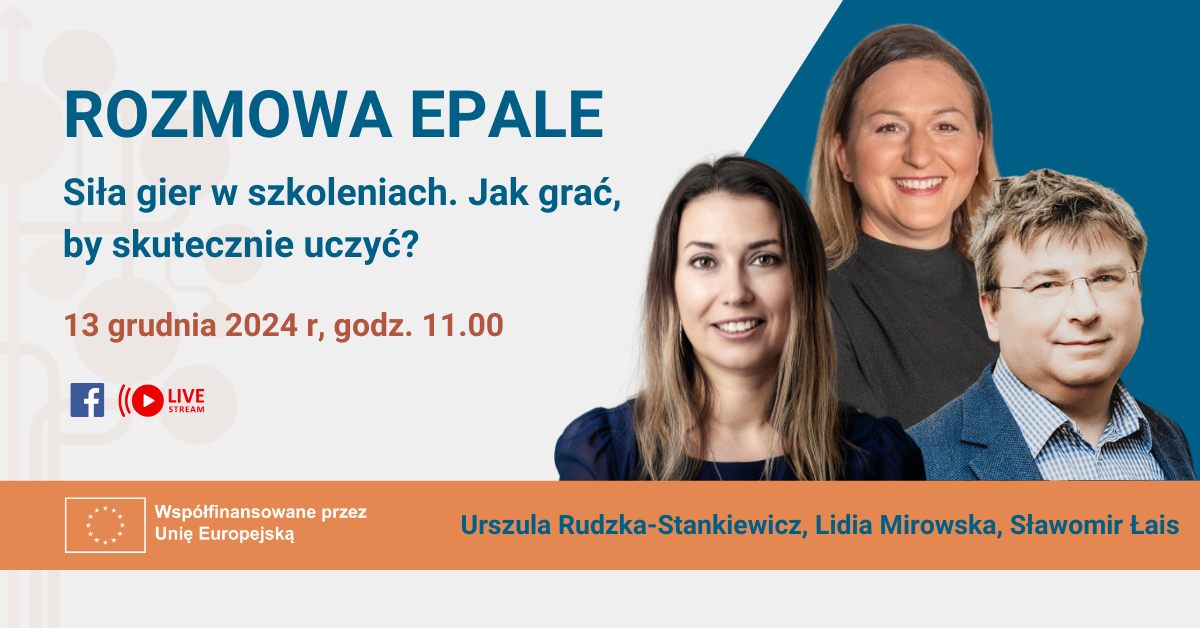Zapraszam również na najbliższe spotkanie dotyczące grywalizacji w edukacji. Już 13 grudnia o godz. 11.00 odbędzie się kolejna Rozmowa EPALE: Siła gier w szkoleniach. Jak grać, by skutecznie uczyć?, podczas której dowiesz się: