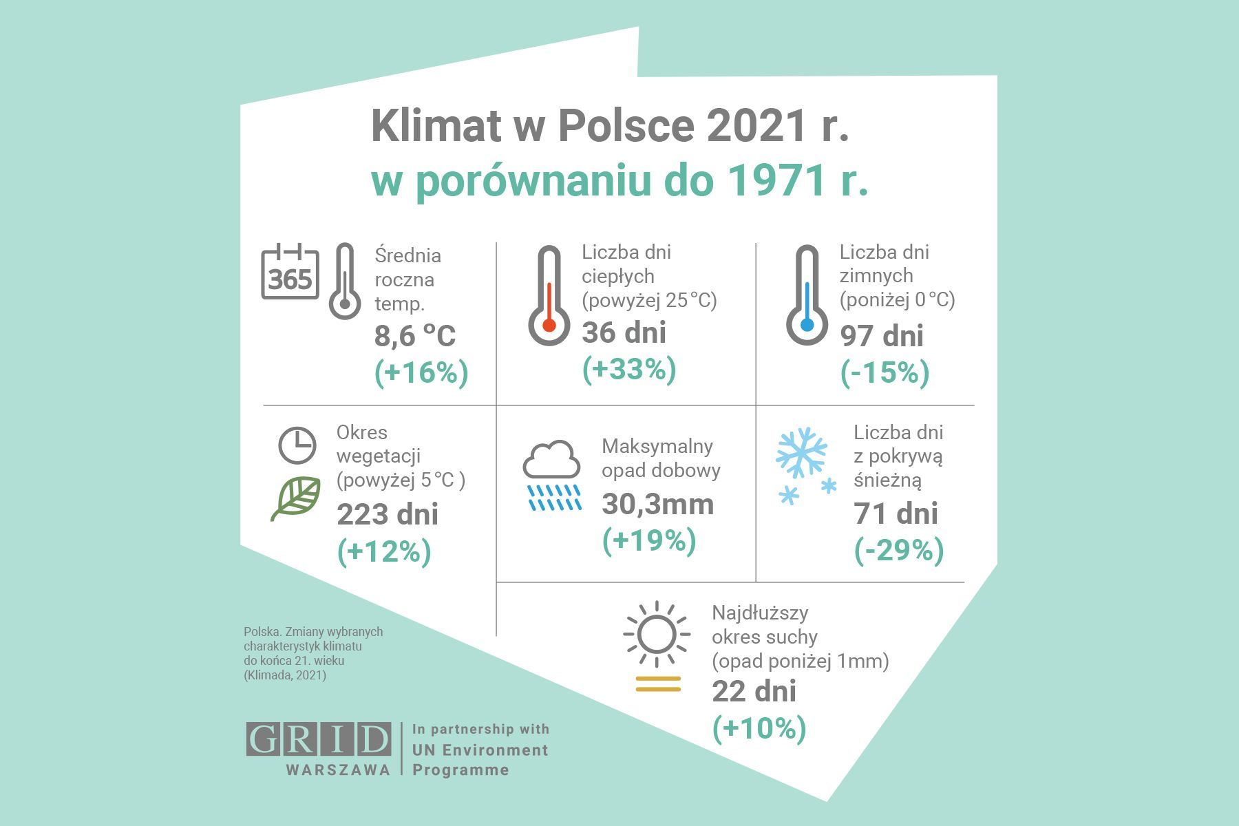 Gwałtowne zjawiska pogodowe i ich konsekwencje, to kolejny fragment klimatycznej układanki. Według danych IPCC — Międzyrządowego Zespołu ds. Zmian Klimatu — nawet zatrzymanie wzrostu temperatury na poziomie 1,5oC pociągnie za sobą 100% wzrost zagrożenia powodziami, narażenie 350 milionów osób na skutki intensywnych susz w miastach, a 700 milionów — na doświadczanie fal upałów co najmniej raz na 20 lat.
