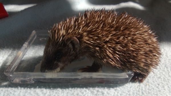 Pani Anna poleca nam jeża przez noc przetrzymać u siebie. W domu ma już jedno rehabilitowane zwierzę, jak również działkę nad Bugiem, jeże „uwalnia”, bo to nie jest zwierzę domowe. Jeż pani Anny do 400 gramów spasł się – dostaje już robaki z fabryki robaków (!), uczy się polować. Gdyby komuś przyszło do głowy chować jeża na diecie bezmięsnej i nieinsektowej – niech wie, że naraża go na ubytki w uzębieniu i kamicę nerek! Kiedy jeż pani Anny urośnie do 700 gramów, zostanie wypuszczony do lasu ze startowym pakietem „żywej” karmy w posagu. Z naszego jeża też będą jeszcze ludzie – uspokaja.