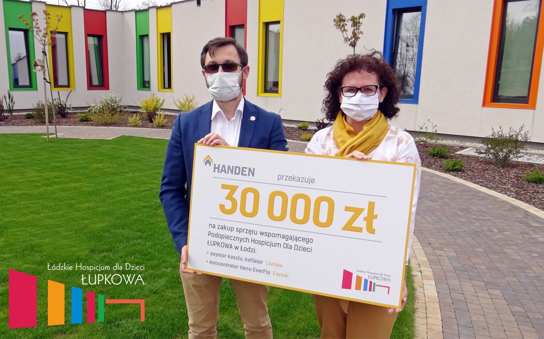Hospicjum na Łupkowej od 21 lat otacza opieką dzieci i dorosłych dotkniętych przewlekłymi, nieuleczalnymi schorzeniami. Placówka powstała jako pierwsze w województwie łódzkim i trzecie w Polsce domowe hospicjum dla dzieci. „Z uwagi na pandemię, ograniczamy do minimum spotkania w Hospicjum, dlatego i z pracownikami Handen nie mogliśmy się spotkać osobiście, więc firma przesłała nam symbolicznie czek” – dodaje z uśmiechem prezes Janina Adamczyk.