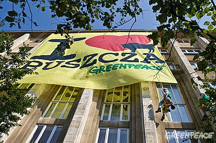 Aktywiści Greenpeace z kilku europejskich krajów weszli dziś rano na dach Ministerstwa Środowiska w Warszawie i rozwiesili transparent z wielkim sercem i hasłem „I love Puszcza”. Ekolodzy chcą w ten sposób zwrócić uwagę na pogarszający się stan ochrony Puszczy Białowieskiej – polskiego skarbu narodowego i światowego dziedzictwa.