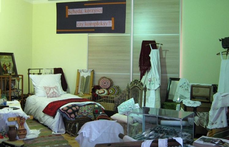 Wystawa ukazuje dawno już zapomniany obraz podlaskiej wsi położonej na terenach Puszczy Knyszyńskiej, gdzie życie nigdy nie było łatwe a mieszkający tu ludzie nie należeli do najbogatszych i musieli być zaradni, aby związać przysłowiowy koniec z końcem. W większości mieszkali tu robotnicy leśni, pracownicy kolei ale i ubodzy rolnicy, wszak ziemia wydarta puszczy była licha. Kanwą wystawy była wiejska izba z łóżkiem, pierzyną, poduszkami, kołyską, etażerką. Znalazły się tu tkane dywany, chodniki ze szmatek, dzieże,wyjątkowy wyciskacz do serów, maszyny do szycia,maglownica, kosze, latarnie do wozów konnych tzw. fanary, dziecięcy fotelik do nocnika…