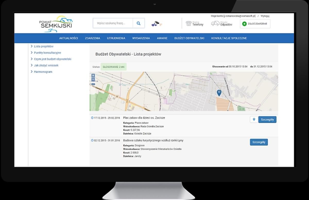 - tworzy mapę propozycji projektów która może służyć w przyszłości jako element weryfikacji potrzeb mieszkańców
