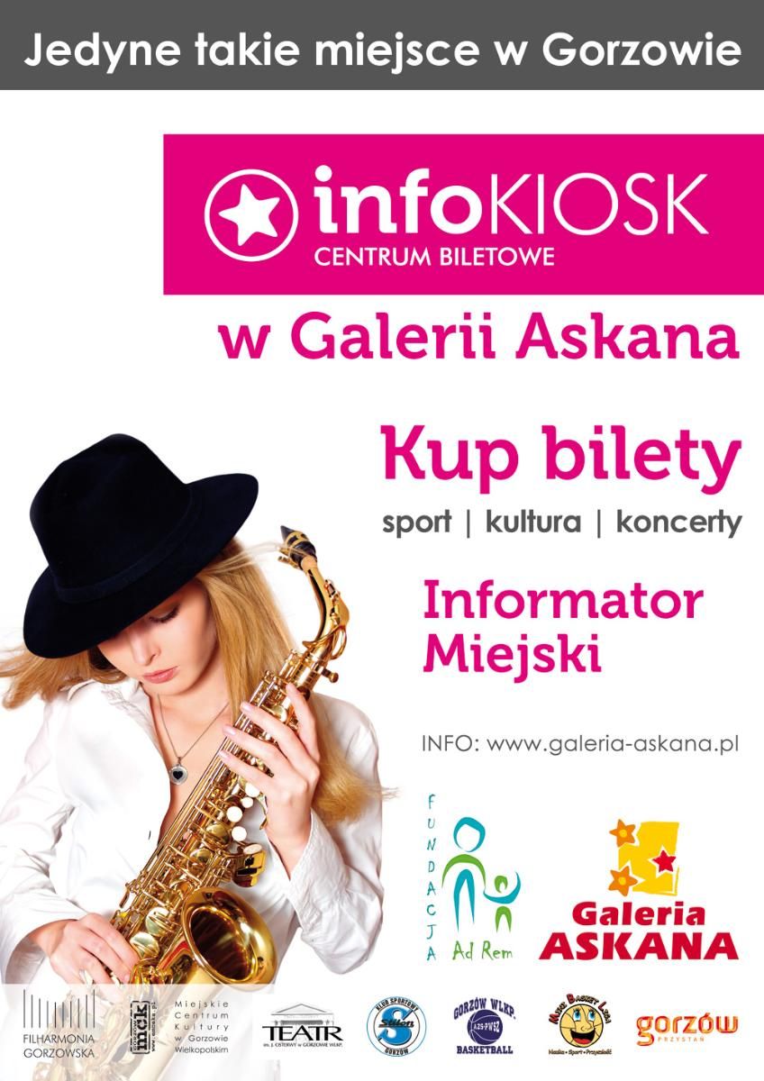 Mijają dwa lata od otwarcia Infokiosk-u w Galerii Askana. To wspólna inicjatywa Galerii Askana oraz Fundacji „Ad Rem”, miejsce integrujące różne płaszczyzny życia: kultury, muzyki, sportu i nie tylko. Partnerami uczestniczącymi w projekcie są: Filharmonia Gorzowska, Miejskie Centrum Kultury, Teatr im. Juliusza Osterwy w Gorzowie, lokalne kluby sportowe, a także Miasto Gorzów oraz firmy i instytucje organizujące wydarzenia kulturalne w Gorzowie.