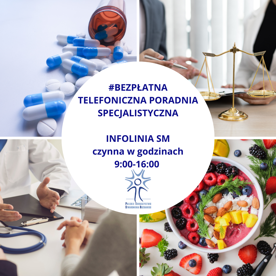 Bezpłatna i ogólnopolska Poradnia specjalistyczna dla osób ze stwardnieniem rozsianym. Zapraszamy Was do korzystania z usług naszych specjalistów całkowicie darmowo i ogólnodostępnie, w dogodnym czasie i terminie nawet w soboty, face to face, telefonicznie lub on-line. Specjaliści udzielający konsultacji i porad to: psycholog, dietetyk, neurolog, prawnik i pracownik socjalny.