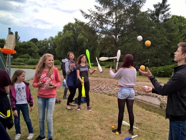 W czerwcu tego roku w Parku Szymańskiego na Woli zorganizowano Światowy Dzień Żonglerki. Owo anonimowe „zorganizowano” nie bardzo pasuje, jako że impreza ma jednego ojca, a także wielu sympatyków – przede wszystkim dzieci ze świetlicy „Świetliki” przy ul. Gibalskiego 10 na Woli.