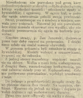 „Otwarte w dzielnicy nalewkowskiej kuchnie robotnicze, o których pisaliśmy, utrzymywane są przeważnie przez samych robotników. Kuchnia przy ul. Gęsiej obchodziła się zupełnie bez pomocy postronnej. W ostatnich dniach zaczęto wydawać obiady prawie bezpłatnie, ale środki finansowe wyczerpują się. Na naradzie organizatorów, odbytej przed kilku dniami, postanowiono rozszerzyć działalność i otworzyć więcej kuchni w odpowiedniejszych lokalach. Organizatorzy mają się zwrócić o pomoc do komitetu obywatelskiego” [KW 226].