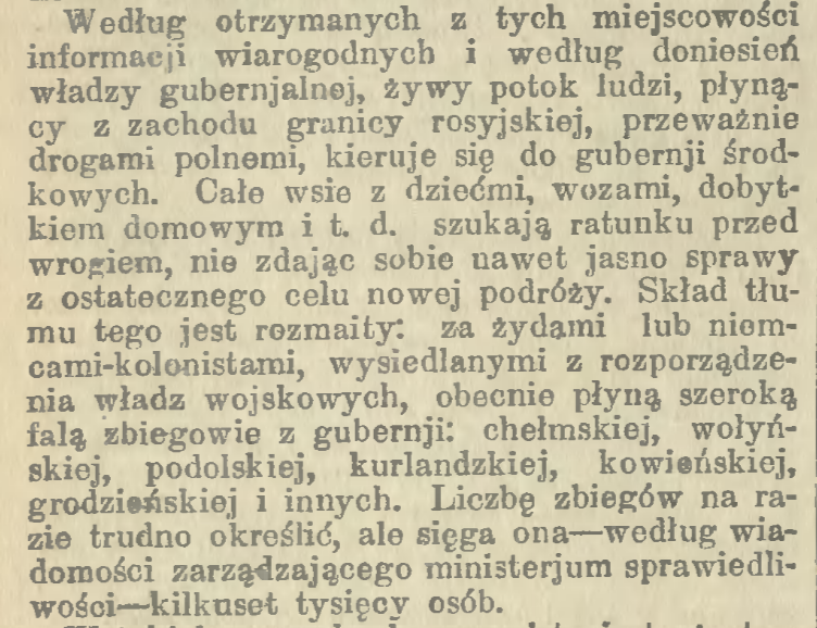 Równie intrygująca jest informacja „Komitet obywatelski Warszawy, zamierzając z jednej strony zaradzić niedogodności, jaka mieszkańcom Warszawy daje się odczuwać z powodu znacznego ograniczenia pracowników pocztowych, z drugiej zaś, pragnąc dać zarobek pewnej liczbie ludzi, będących dziś bez grosza i chleba, organizuje roznoszenie listów. Za każdy doręczony list roznosiciel będzie pobierał 2 kop. (…) Każdy kandydat powinien: 1) posiadać polecenie osoby, znanej członkom komitetu, lub polecenie którejkolwiek instytucji; 2) posiadać dowody osobiste; 3) być dostatecznie zdrowym; 4) znać dobrze Warszawę; 5) umieć czytać i pisać po polsku i rosyjsku. Przyjęty na listonosza obowiązany będzie mieć: a) jakąkolwiek torbę nieprzemakalną, mieszczącą około 200 listów; b) woreczek mocny na pieniądze”.