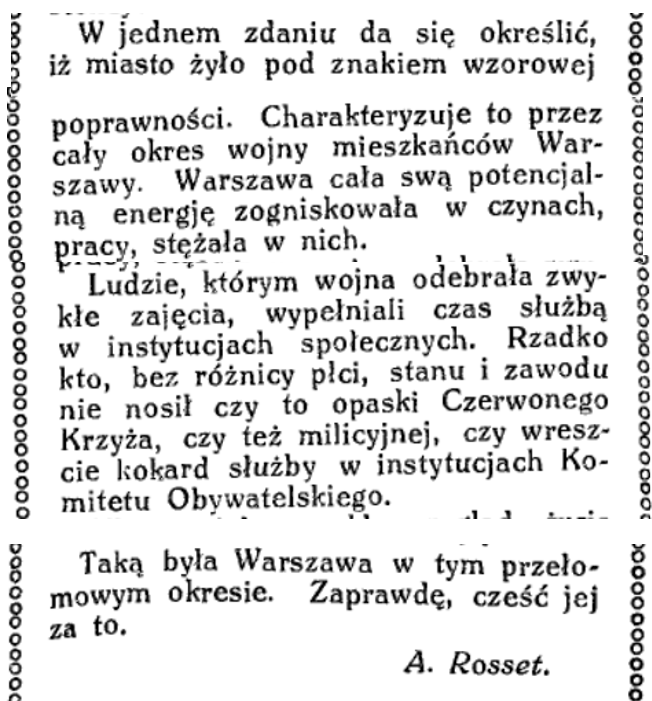 „Komitet obywatelski odbywa po kilka razy dziennie zebranie w sali portretowej w magistracie, bądź w swoim składzie, bądź z udziałem przedstawicieli wojskowych władz niemieckich.