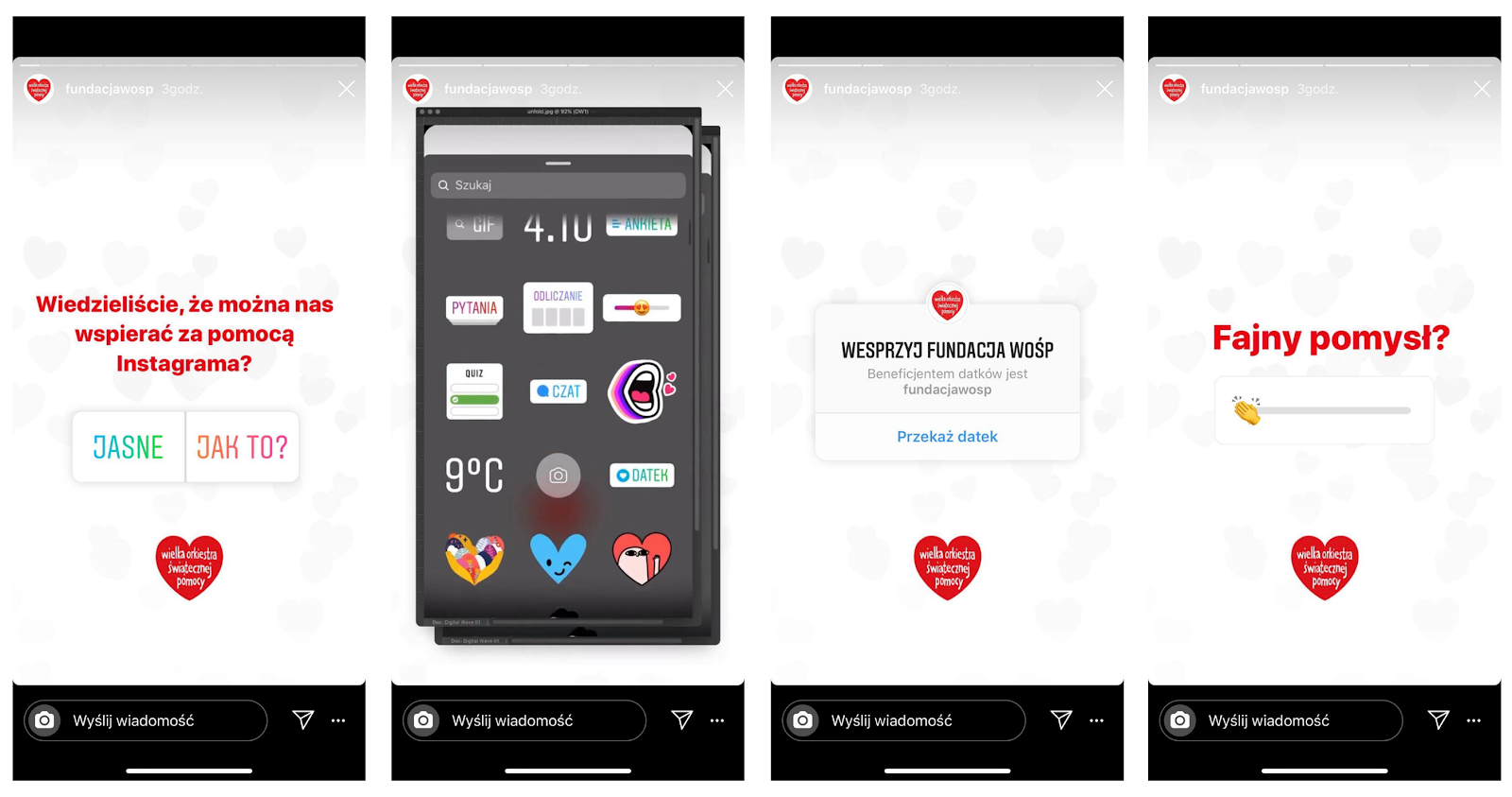 Pierwszy krok, to już sama myśl o tym, że należy to robić. W przypadku tego pytania posłużę się konkretnymi przykładami. Informuj użytkowników o tym, że mogą i edukuj, jak mogą wspierać Was za pomocą Instagram Stories, jak Fundacja WOŚP.