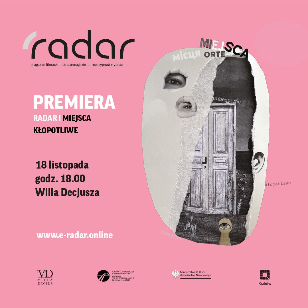 Najnowszy numer „Radaru” – jedynego trójjęzycznego czasopisma literackiego w Europie – jest już dostępny online (https://e-radar.online/), a podczas premiery będzie można zabrać do domu także jego limitowaną, drukowaną wersję.
