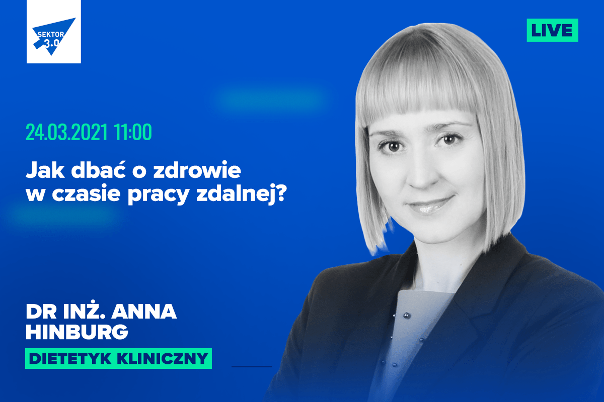 Ostatni rok zmienił diametralnie nasze życie. Inaczej pracujemy, inaczej odpoczywamy, a dbałość o zdrowie kojarzymy raczej z maseczką i myciem rąk, niż ze zbilansowaną dietą i aktywnością na świeżym powietrzu. Dlatego na kolejny LIVE Sektor 3.0 zaprosiliśmy dr inż. Annę Hinburg, dietetyczkę kliniczną, która podpowie nam, jak gotować zdrowo, szybko i smacznie oraz zachować sprawność w czasie home office. Zapraszamy w środę (24.03) o godz. 11:00!