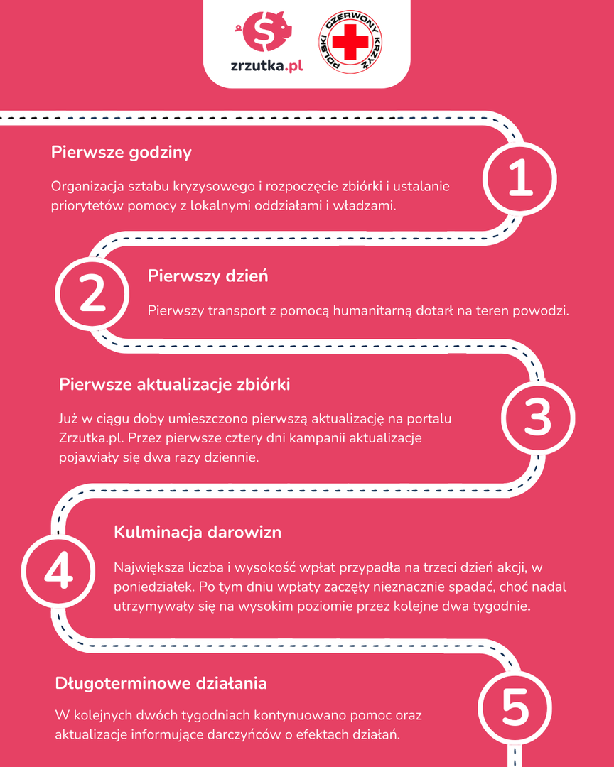 Tak więc natychmiastowa reakcja, bez względu na weekend, ma ogromne znaczenie. Trzeba dać darczyńcom możliwość pomagania od razu, kiedy media zaczynają o tym mówić.