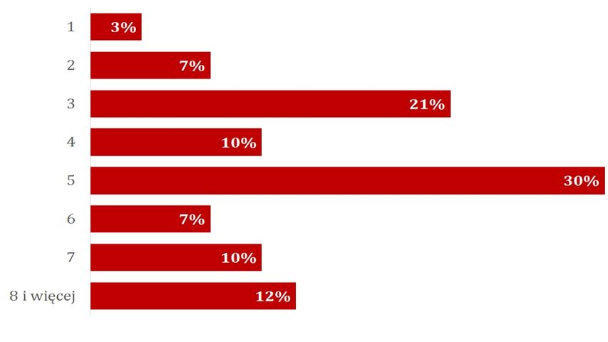 Zarząd przeciętnej organizacji liczy 5 osób. Zarządy 3-osobowe lub mniejsze ma 31% stowarzyszeń i fundacji. Więcej niż 5 osób zasiada w zarządzie 29% organizacji.
