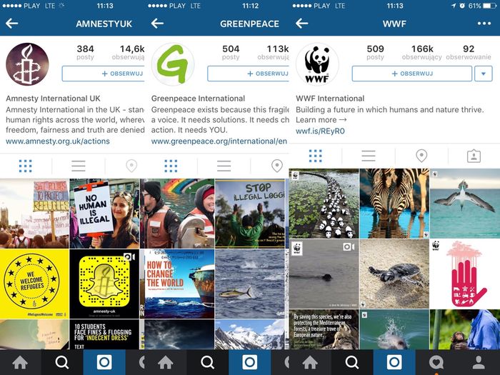 Inne organizacje nie mogą pochwalić się aż takimi wynikami, ale liczby nie są małe - jak na NGO-sy, oczywiście. Amnesty International UK ma 14 tysięcy obserwujących, Greenpeace 113 tysięcy, a World Wildlife Foundation 166 tysięcy. Nie są to małe liczby, szczególnie biorąc pod uwagę treści, jakie trafiają na Instagrama, czy właściwie, jakimi serwis ten się karmi.