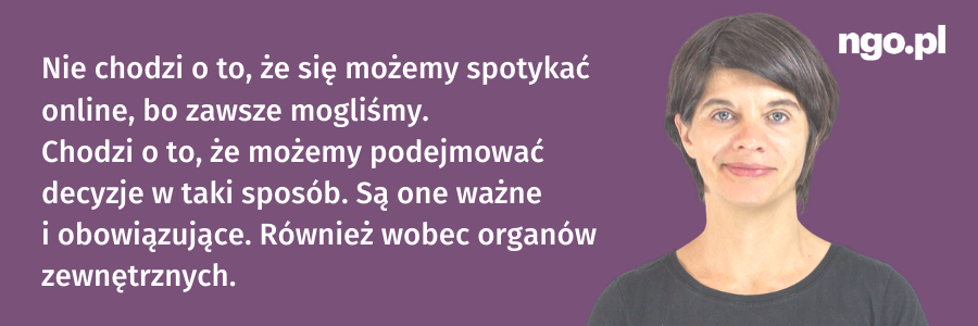 Jak spotykać się online w organizacji pozarządowej, aby decyzje podejmowane podczas takiego spotkania były wiążące i nie budziły prawnych wątpliwości? Dowiedz się z nagrania LIVE ngo.pl.