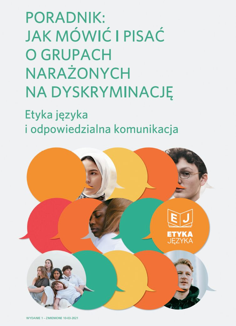 Poradnik: jak mówić i pisać o grupach mniejszościowych kierowany jest do dziennikarzy i dziennikarek, specjalistów i specjalistek ds. komunikacji oraz innych osób wypowiadających się publicznie, mających wpływ na język debaty publicznej. Powstał we współpracy merytorycznej z prof. dr hab. Ewą Kołodziejek, z Uniwersytetu Szczecińskiego, członkinią Rady Języka Polskiego. Poradnik dostępny jest w wersji online pod adresem etykajezyka.pl, również do pobrania jako plik .pdf, na licencji CC (BY). Oznacza to, że może być wykorzystywane w dowolny sposób i bez ograniczeń, za podaniem źródła.