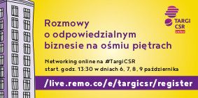 Ósma edycja Targów CSR, największego w Polsce wydarzenia poświęconego odpowiedzialnemu biznesowi i zrównoważonemu rozwojowi, rozpoczęła się 5 października i potrwa do 9 października. Po raz pierwszy w historii Targi CSR odbędą się wyłącznie w formule online. Zachowane są kluczowe elementy inicjatywy: część wystawowa (https://targicsr.webexpo.pl/), konferencyjna (odpowiedzialnybiznes.pl) oraz networkingowa (https://live.remo.co/e/targicsr/register). Organizatorem wydarzenia jest Forum Odpowiedzialnego Biznesu.
