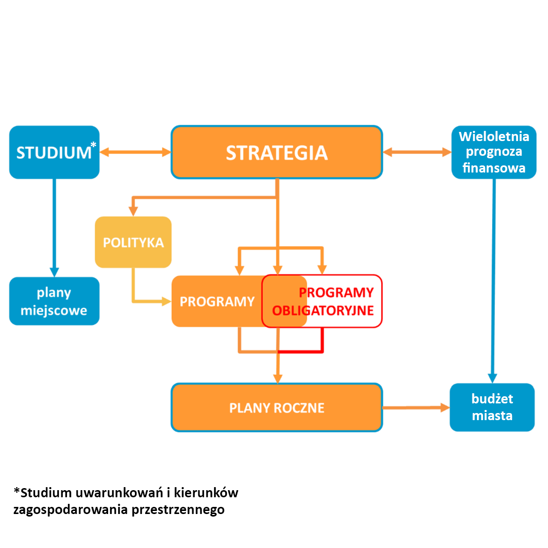 - dokumenty wykonawcze – zapewniające operacjonalizację celów strategii rozwoju lub dotyczący innych obowiązkowych zadań niewynikających ze strategii rozwoju; są to programy lub plany roczne.