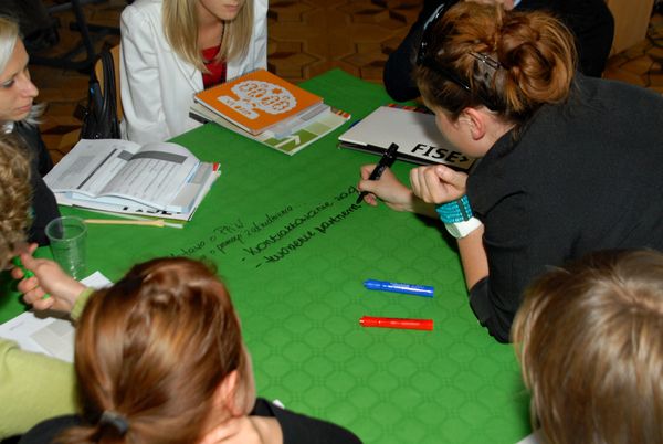 Po prezentacji nastąpiła część warsztatowa sesji. Uczestnicy zostali podzieleni na cztery kilkuosobowe grupy, które miały za zadanie wskazać mocne i słabe strony organizacji pozarządowych działających na rynku pracy oraz stojące przed nimi szanse i zagrożenia. Celem miało być wspólne zastanowienie się, co zrobić, aby wykorzystać potencjał trzeciego sektora i wzmocnić organizacje działające w obszarze rynku pracy tak, aby mogły jeszcze lepiej przysłużyć się kreowaniu zatrudnienia.