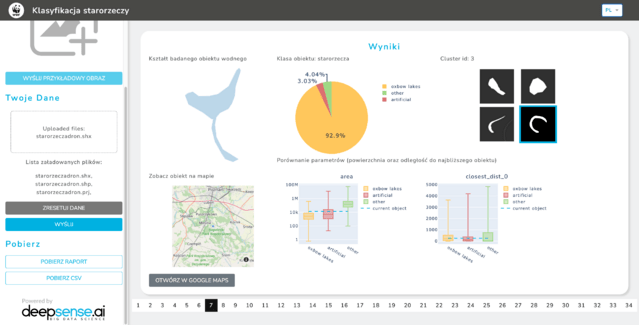Końcowym efektem współpracy przyrodników i ekspertów deepsense.ai są dwa narzędzia wykorzystujące sztuczną inteligencję. Pierwszym jest model służący do identyfikacji starorzeczy na dużych obszarach, który może być zastosowany również w innych krajach niż Polska. Drugim będzie aplikacja online o charakterze edukacyjnym, adresowana do studentów i wykładowców przyrodniczych uczelni wyższych, która pozwala na analizę i klasyfikację do 100 zbiorników wodnych na podstawie danych przestrzennych wprowadzonych do aplikacji przez użytkownika.