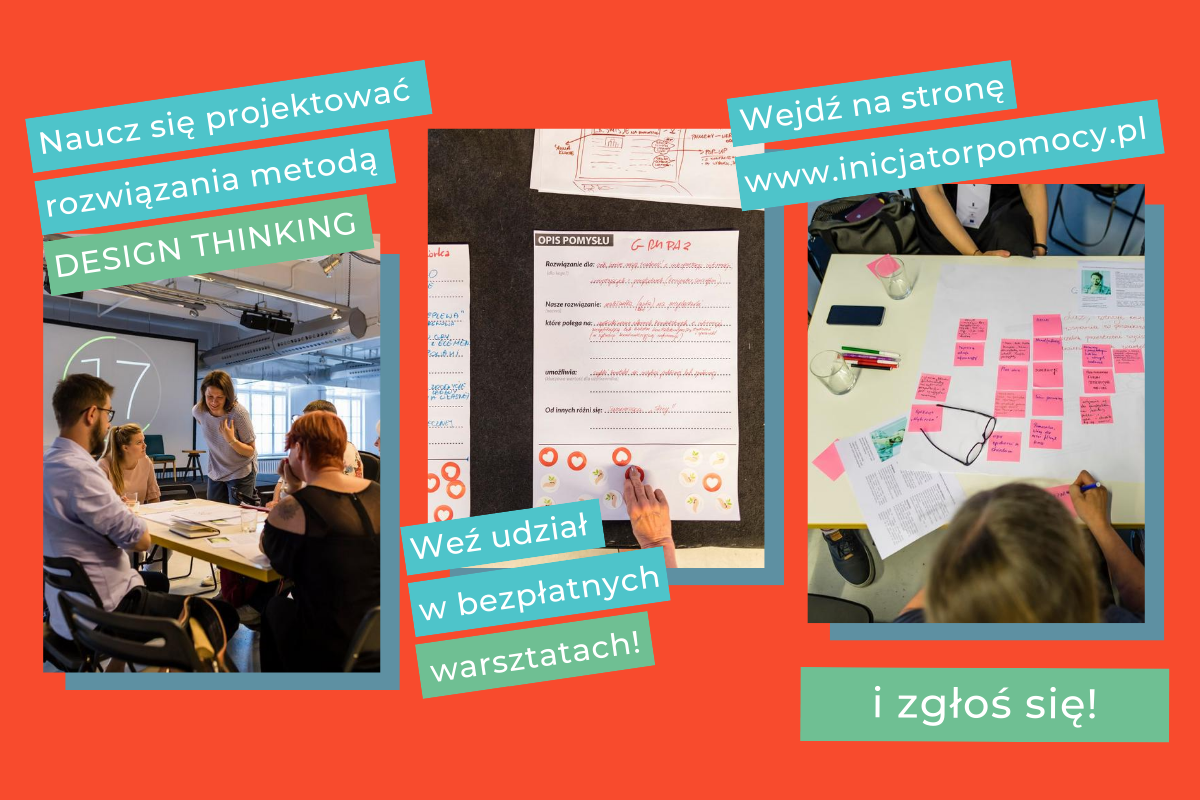 Zgłoszenia na warsztaty Fundacja przyjmuje poprzez ten formularz. O przyjęciu na warsztaty decyduje kolejność zgłoszeń. Z danej organizacji może zgłosić się tylko jedna osoba. Uczestnicy warsztatów otrzymają imienne zaświadczenia potwierdzające udział w warsztatach projektowania innowacji społecznych metodą design thinking.