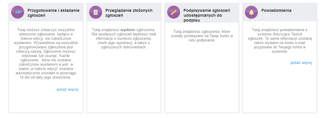Po zalogowaniu wybierz i kliknij w przycisk „Przygotowanie i składanie zgłoszeń”.