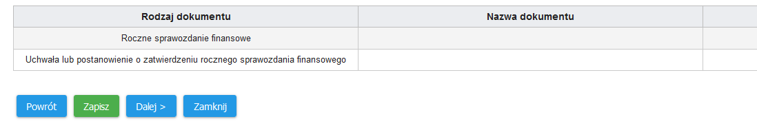 Kliknij „zapisz”, po czym ponownie przekieruje Cię do ekranu z przyciskiem „dodaj dokument” po to by dodać uchwałę zatwierdzającą sprawozdanie finansowe (skan, zdjęcie albo elektroniczną wersję uchwały). Uzupełnij informacje podając datę sporządzenia uchwały o zatwierdzeniu – pamiętaj masz 15 dni do daty zatwierdzenia za złożenie dokumentów do KRS. Kliknij „zapisz”.