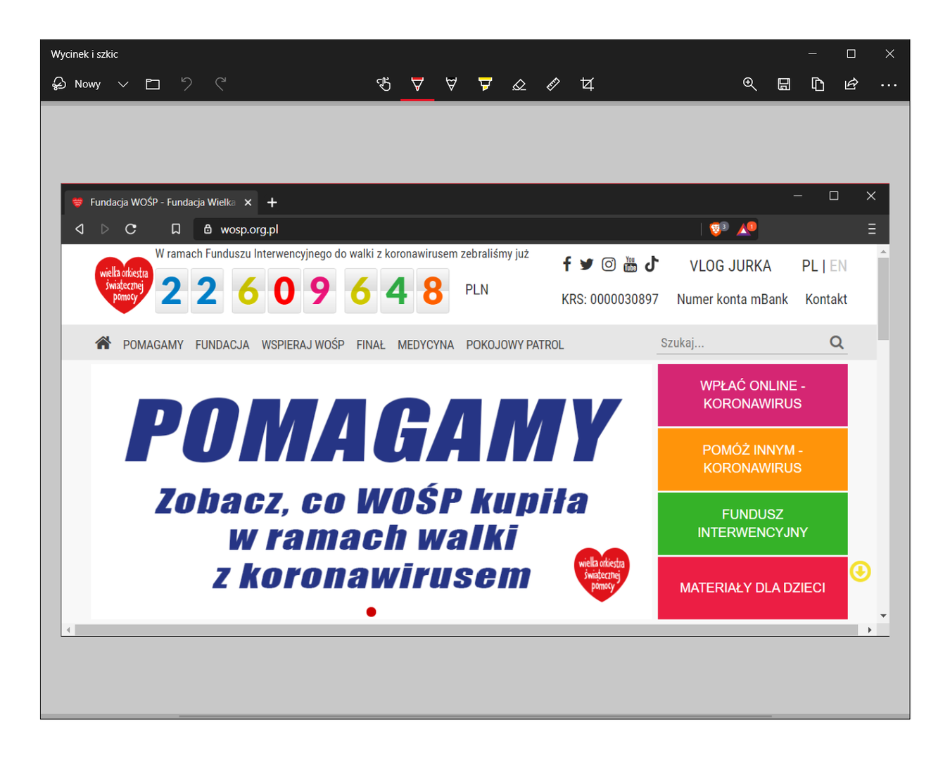 Oprócz tego, po wykonaniu zrzutu pojawia się panel, który umożliwia wykonanie szybkiej edycji screenu (np. nanoszenie notatek, strzałek).