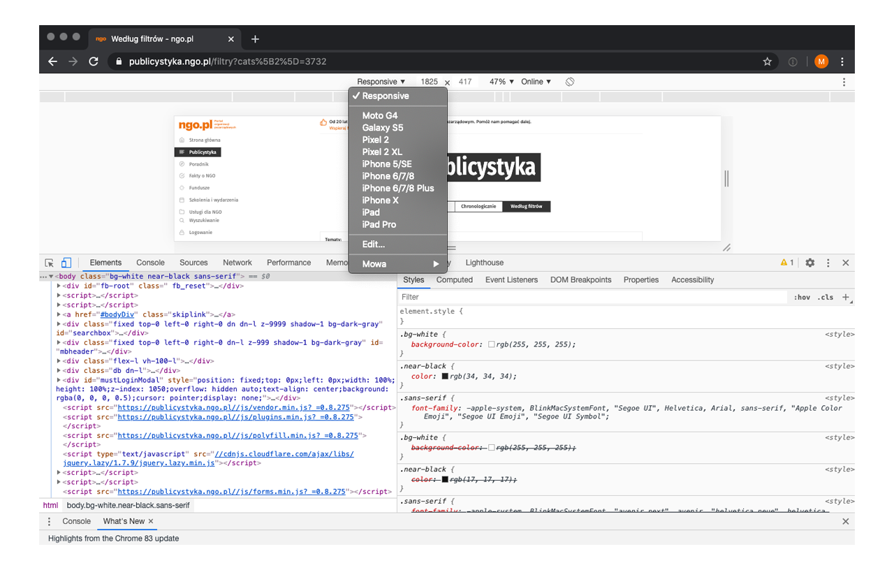 - jak za pomocą komputera wykonać zrzut strony internetowej widzianej tak, jakby była ona wyświetlana na urządzeniu mobilnym.