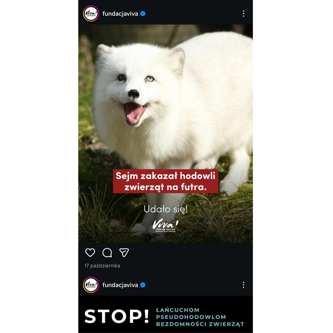 Pamiętam z dzieciństwa zdjęcia obdartych ze skóry lisów czy innych zwierząt futerkowych, nie pamiętam niestety, o jakie zwierzęta chodziło i gdzie widziałem te publikacje, ale same obrazy mam w pamięci do dziś. Nie jestem pewien, czy chciałbym, by oglądały je dzieci. Problem jest oczywiście palący, wydaje mi się jednak, że można o nim mówić tak, jak na poniższym zdjęciu. Pokazując uśmiechnięte zwierzę, kojarzące się z radosnym życiem, a nie bolesną śmiercią.