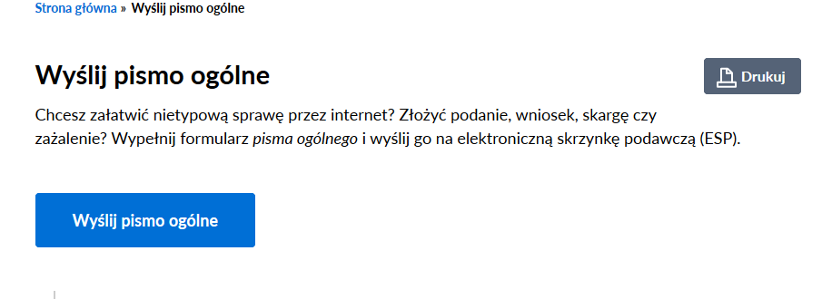 - Wejdź na stronę https://obywatel.gov.pl/. W wyszukiwarce wpisz „pismo ogóle”, wybierz „wyślij pismo ogólne”. Zostaniesz przekierowany na stronę do wysyłki.
