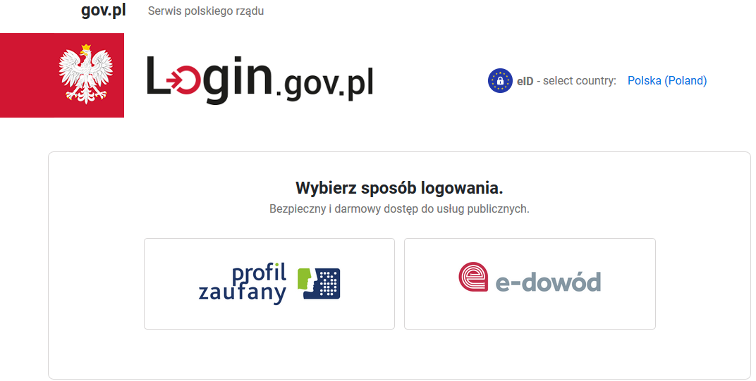 - Wybierz swój sposób logowania np. „profil zaufany” i postępuj zgodnie z zalecaniami.