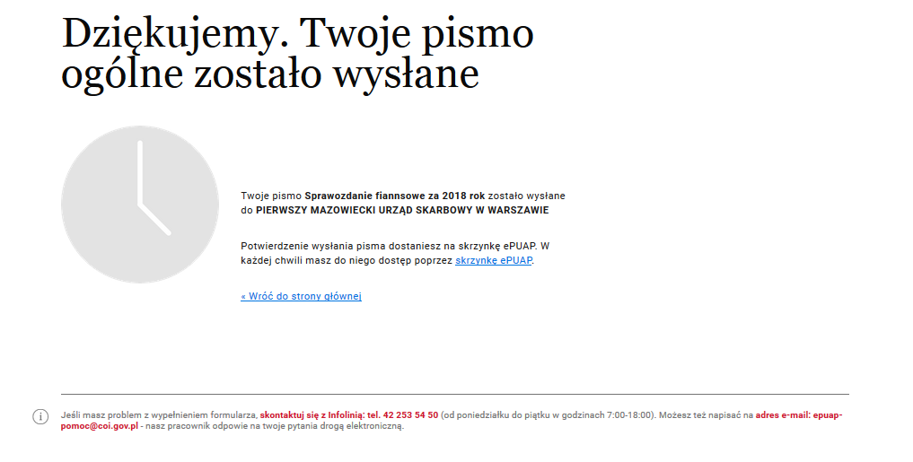 - Jeszcze raz zostaniesz przekierowany - poproszony o podpisanie pisma profilem zaufanym - po czym dokument zostanie przesłany na skrzynkę podawczą twojego urzędu skarbowego. Zostaniesz o tym poinformowany. Otrzymasz także na swojego maila informację o przesłaniu przez Ciebie pisma.