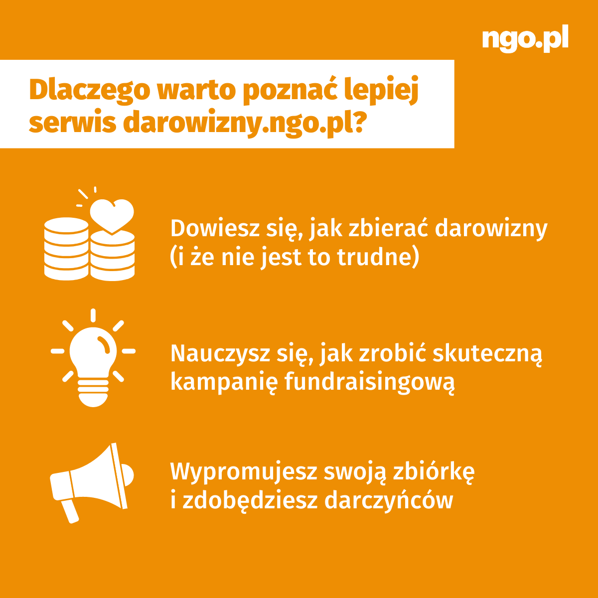 Serwis darowizny.ngo.pl to narzędzie, które daje organizacjom konkretne wskazówki, jak zbierać darowizny i korzystać z innych metod pozyskiwania środków na działania NGO.