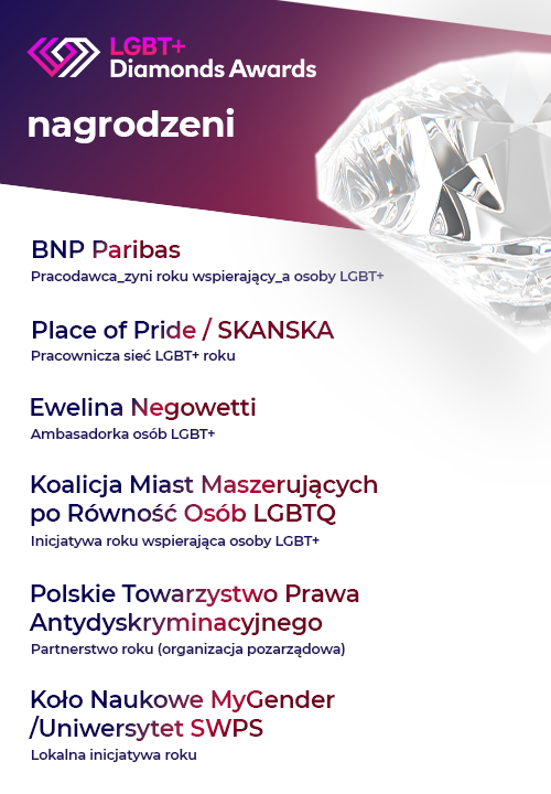 Więcej informacji na stronie www.lgbtdiamondsawards.pl i Facebooku @LGBT+ Diamonds Awards.