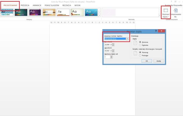 Przed rozpoczęciem pracy w PowerPoint ustalamy orientacje, wielkość i wymiary naszej infografiki. W zależności od celu, rodzaju danych i pomysłu na ich prezentację, wybieramy orientację pionową lub poziomą. Pozioma sprawdza się, gdy chcemy pokazać chronologię (np. dane na osi czasu) lub lokalizację. Pionowa – gdy prezentujemy dane z różnych kategorii i dzielimy je na części (np. grupujemy w blokach umiejscowionych jeden pod drugim). Oczywiście, nie jest to reguła – częściej o kształcie dzieła decyzuje pomysł, który może polegać na przykład na kreatywnym odwróceniu schematów.