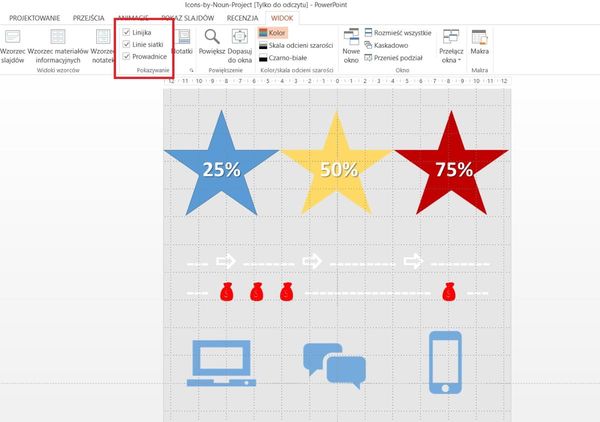 Jeśli mamy takie możliwości i/lub jesteśmy w stanie poświęcić na wykonanie infografiki więcej czasu, elementy graficzne możemy zaprojektować sami. Jeśli nie, grafikę możemy wyszukać w sieci albo skorzystać z możliwości PowerPointa, który pełni również rolę prostego edytora graficznego.
