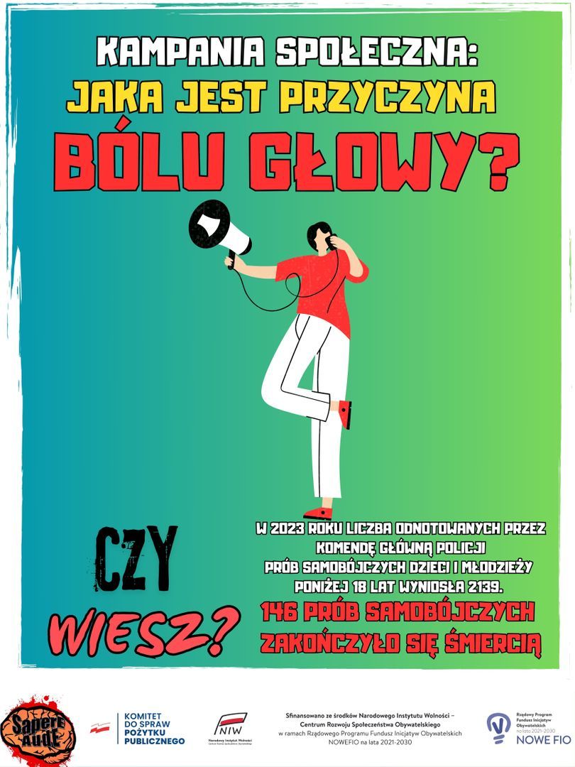 Stan zdrowia psychicznego dzieci i młodzieży pogarsza się z każdym rokiem. Specjaliści dostrzegają potrzebę systemowych rozwiązań w tej dziedzinie oraz konieczność różnorakich działań, w tym prowadzonej w szkołach psychoedukacji. Ważne i potrzebne są też wszelkie inicjatywy oddolne, jak realizowana w Łomży przez Stowarzyszenie Sapere Aude kampania społeczna „Jaka jest przyczyna bólu głowy?”.