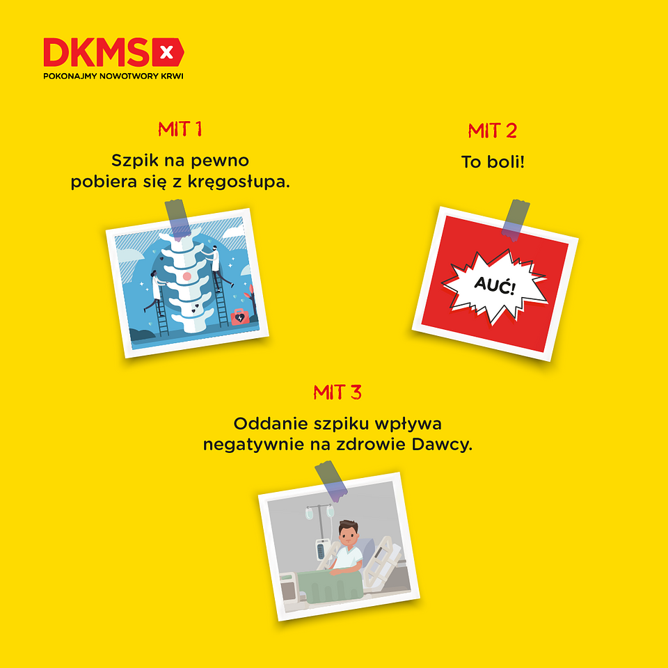 Fundacja DKMS na swoim profilu na Instagramie zapytała obserwatorów o mity, z którymi spotkali się w kontekście idei dawstwa szpiku. W wiadomościach od internautów najczęściej pojawiały się następujące odpowiedzi: „szpik pobiera się z kręgosłupa”, „oddanie szpiku boli” oraz „oddanie szpiku może zaszkodzić zdrowiu dawcy”. Czy te obawy są słuszne?